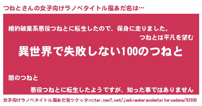 | 男性向けラノベタイトル風あだ名 | 『つねとという概念が存在しない退屈な世界 』 |