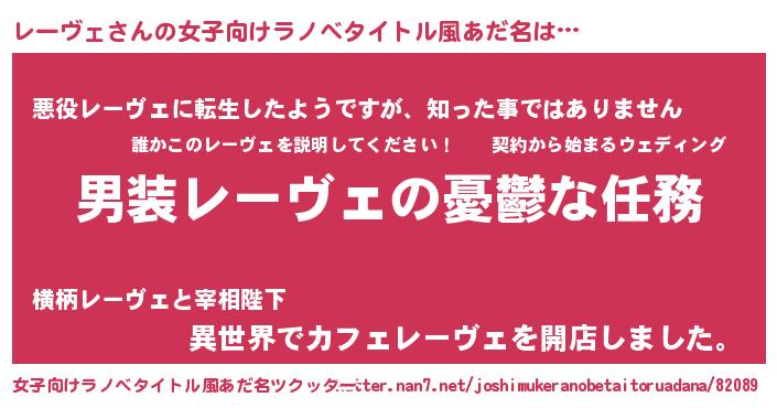 | 男性向けラノベタイトル風あだ名 | 『冴えないレーヴェの育てかた』 |