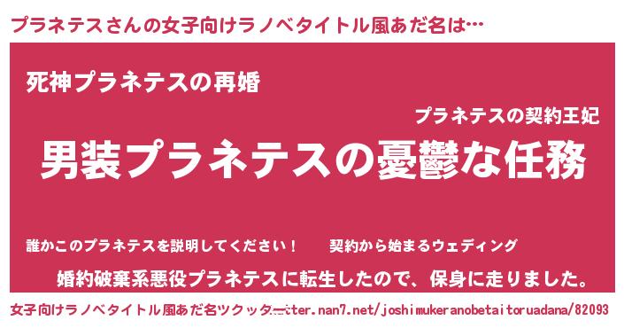 | 男性向けラノベタイトル風あだ名 | 『うちのプラネテスが世界を掌握している!』 |