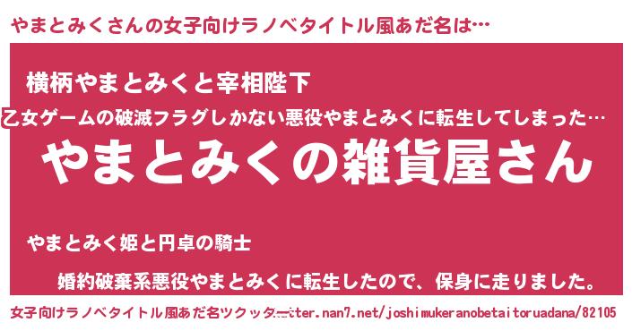 | 胡散臭い通販商品みたいなあだ名 | 『幸せが訪れる高級そうな壺…その名も「やまとみく」』 |
