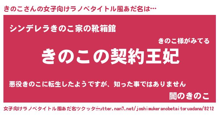 | 男性向けラノベタイトル風あだ名 | 『きのこという概念が存在しない退屈な世界 』 |