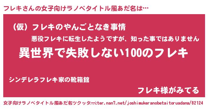| 男性向けラノベタイトル風あだ名 | 『フレキという概念が存在しない退屈な世界 』 |