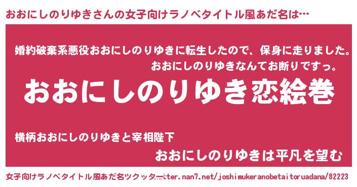 | 男性向けラノベタイトル風あだ名 | 『ノーゲーム・ノーオオニシノリユキ』 |