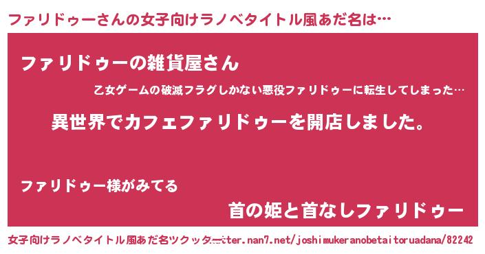 | 男性向けラノベタイトル風あだ名 | 『誰もが恐れるあのファリドゥーが、ぼくの専属メイドになるようです。』 |