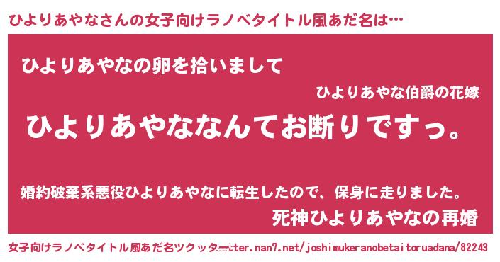 | 意味不明あだ名 | 『自称ひよりあやな』 |