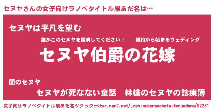 | ファンタジー風あだ名 | 『エターナルセヌヤー』『ヴァルセヌーナ』 |