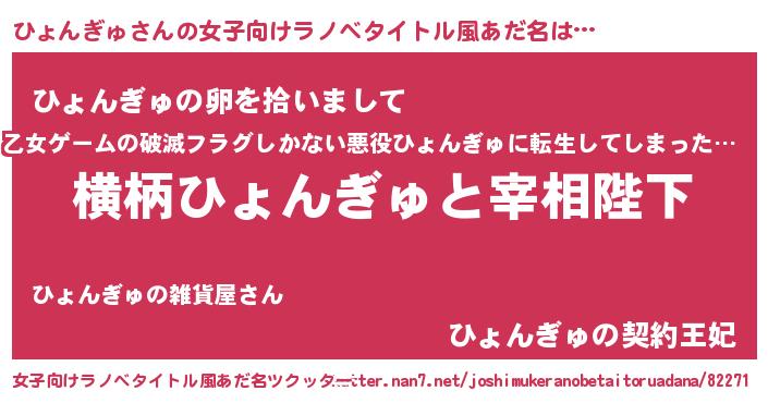 | 男性向けラノベタイトル風あだ名 | 『ひょんぎゅに滅ぼされるだけの簡単なお仕事です』 |
