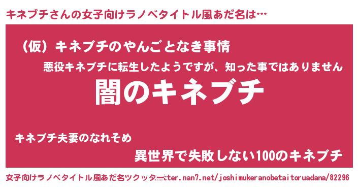 | 男性向けラノベタイトル風あだ名 | 『Re:キネブチから始める異世界生活』 |