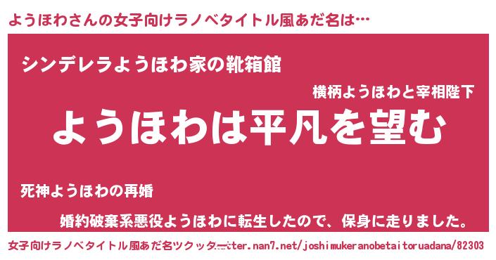 | 胡散臭い通販商品みたいなあだ名 | 『信頼と実績のペンダント…その名も「ようほわ」』 |