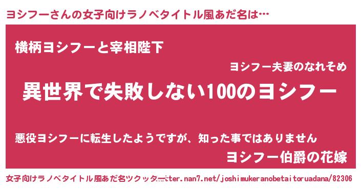 | 男性向けラノベタイトル風あだ名 | 『ヨシフーという概念が存在しない退屈な世界 』 |