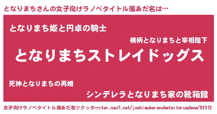 | 男性向けラノベタイトル風あだ名 | 『Re:となりまちから始める異世界生活』 |