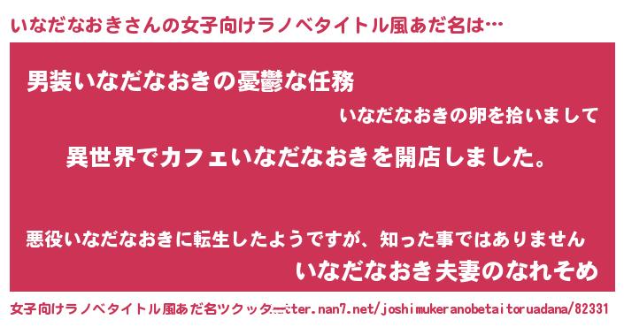 | 男性向けラノベタイトル風あだ名 | 『誰もが恐れるあのいなだなおきが、ぼくの専属メイドになるようです。』 |