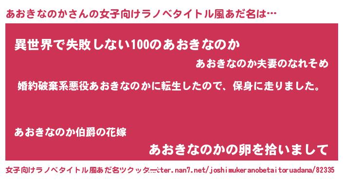 | 男性向けラノベタイトル風あだ名 | 『アオキナノカスレイヤー』 |