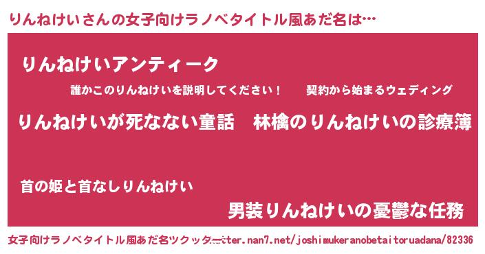 | 男性向けラノベタイトル風あだ名 | 『魔弾の王とりんねけい』 |