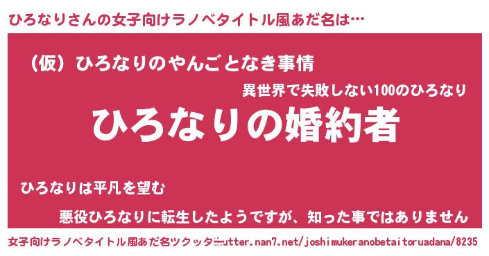 | 男性向けラノベタイトル風あだ名 | 『うちの娘の為ならば、俺はもしかしたらひろなりも倒せるかもしれない。』 |