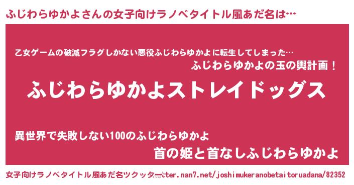 | 男性向けラノベタイトル風あだ名 | 『Re:ふじわらゆかよから始める異世界生活』 |
