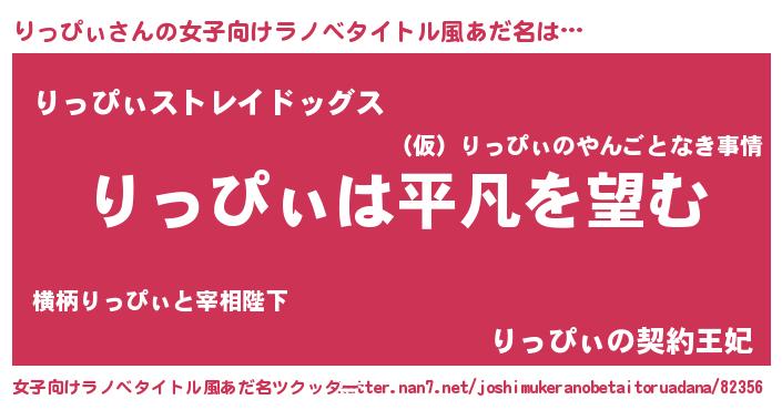 | 胡散臭い通販商品みたいなあだ名 | 『信頼と実績のサプリメント…その名も「りっぴぃ」』 |