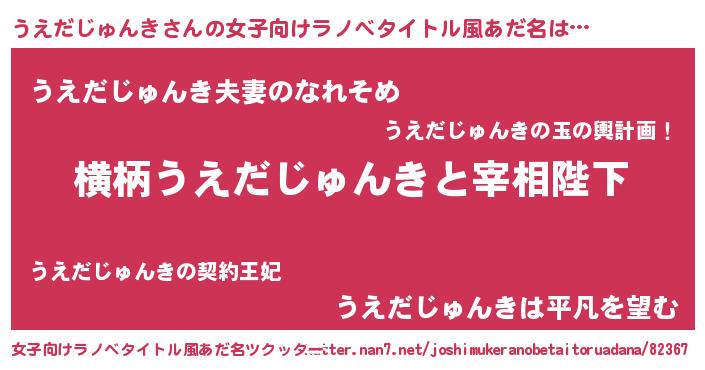 | 男性向けラノベタイトル風あだ名 | 『うえだじゅんきに滅ぼされるだけの簡単なお仕事です』 |