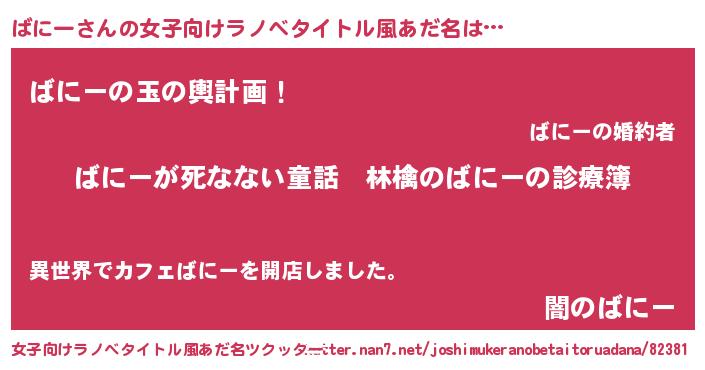 男性向けラノベタイトル風あだ名 | 『魔弾の王とばにー』 |