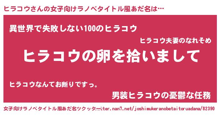 | 男性向けラノベタイトル風あだ名 | 『ダンジョンにヒラコウを求めるのは間違っているだろうか』 |