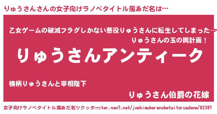 | 男性向けラノベタイトル風あだ名 | 『魔法科高校のりゅうさん』 |