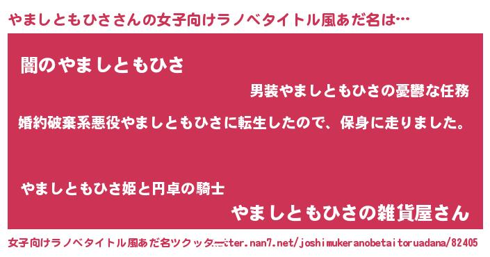 | 男性向けラノベタイトル風あだ名 | 『ヤマシトモヒサスレイヤー』 |
