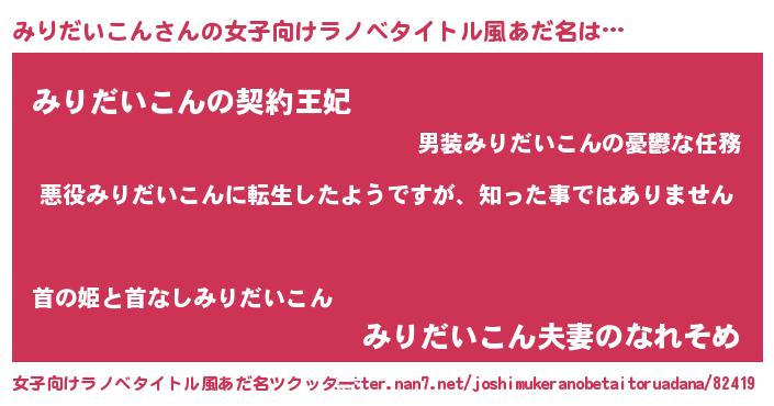 | 胡散臭い通販商品みたいなあだ名 | 『あなたにだけ特別に提供する100年もののヴィンテージワイン…その名も「みりだいこん」』 |