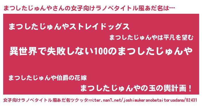 | 男性向けラノベタイトル風あだ名 | 『まつしたじゅんやという概念が存在しない退屈な世界 』 |