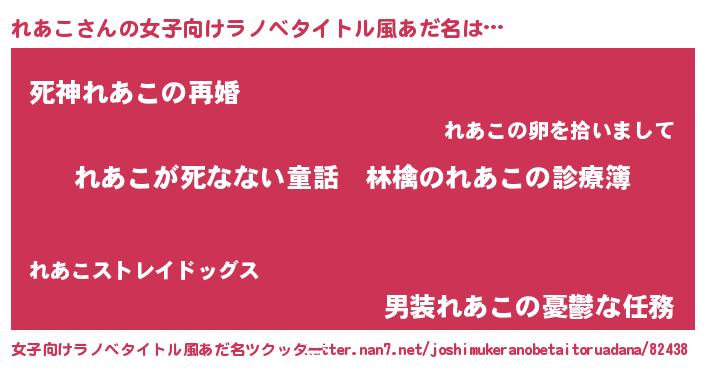 | 意味不明あだ名 | 『住所不定無職れあこ(65歳)』『自称れあこ』 |
