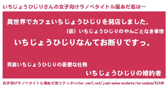 | 恥ずかしいあだ名 | 『イチジョウヒジリデラックス』 |