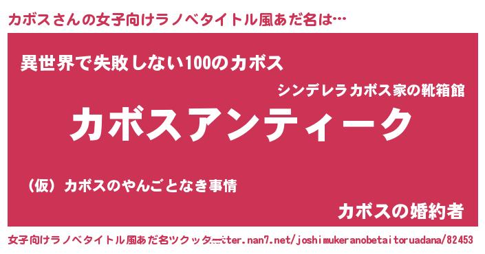 | 意味不明あだ名 | 『自称カボス』『永久保存カボス』 |