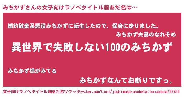 | 胡散臭い通販商品みたいなあだ名 | 『絶対に幸福をもたらす健康食品…その名も「みちかず」』 |