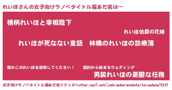 | 男性向けラノベタイトル風あだ名 | 『魔弾の王とれいほ』 |