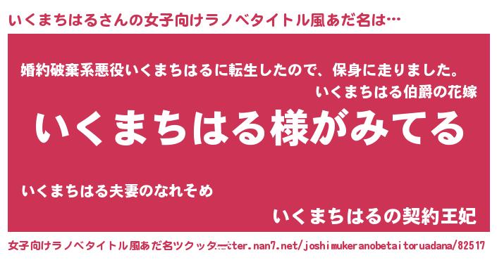 | 胡散臭い通販商品みたいなあだ名 | 『全米が絶賛したサプリメント…その名も「いくまちはる」』 |