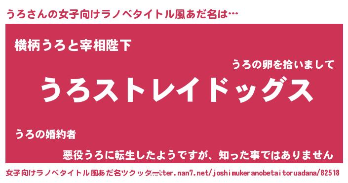 | 意味不明あだ名 | 『自称うろ』『住所不定無職うろ(91歳)』 |