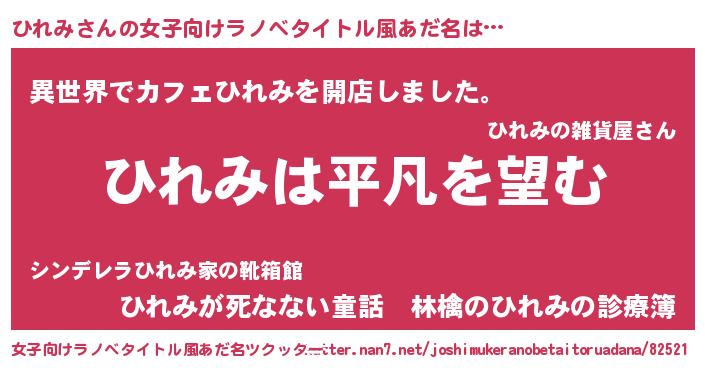 | 男性向けラノベタイトル風あだ名 | 『ダンジョンにひれみを求めるのは間違っているだろうか』 |