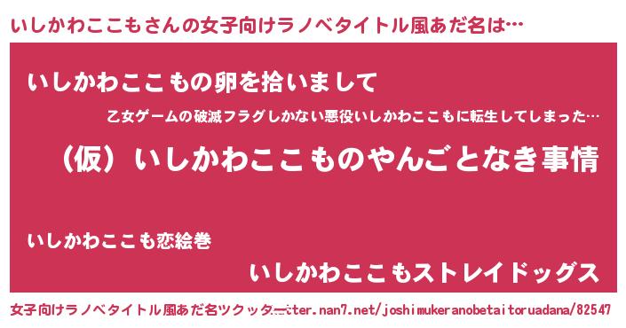 | 男性向けラノベタイトル風あだ名 | 『いしかわここもの憂鬱』 |