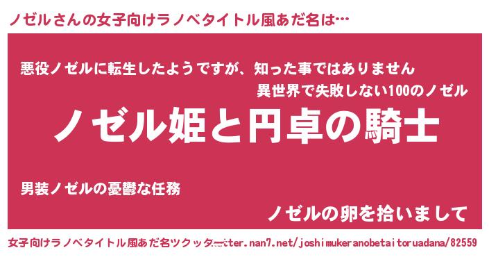 | 男性向けラノベタイトル風あだ名 | 『ノゼルの憂鬱』 |