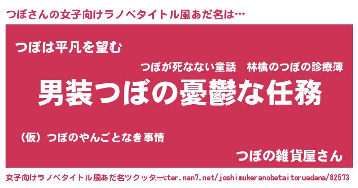 | 男性向けラノベタイトル風あだ名 | 『うちのつぼが世界を掌握している!』 |