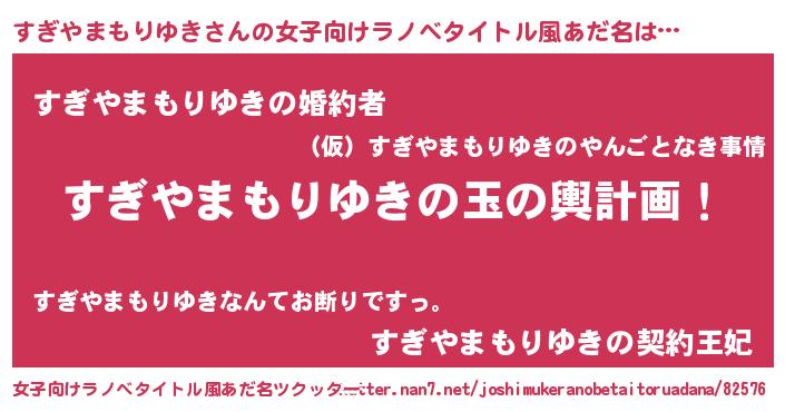 | 男性向けラノベタイトル風あだ名 | 『転生したらすぎやまもりゆきだった件』 |