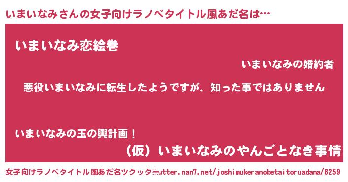 | 男性向けラノベタイトル風あだ名 | 『この素晴らしい世界にいまいなみを!』 |