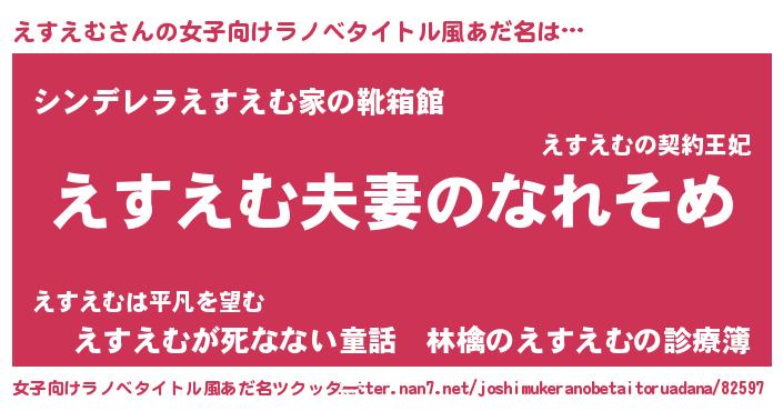 | 男性向けラノベタイトル風あだ名 | 『おまえをオタクにしてやるから、俺をえすえむにしてくれ! 』 |