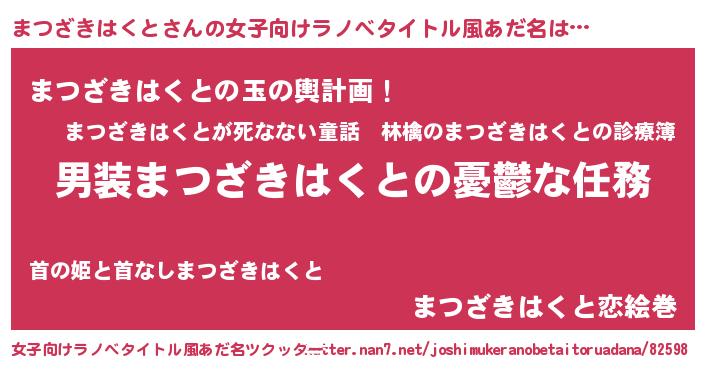 | 男性向けラノベタイトル風あだ名 | 『うちのまつざきはくとが世界を掌握している!』 |