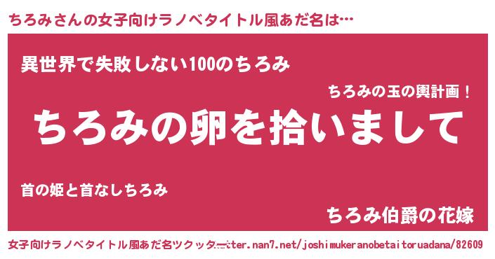 | 男性向けラノベタイトル風あだ名 | 『ダンジョンにちろみを求めるのは間違っているだろうか』 |