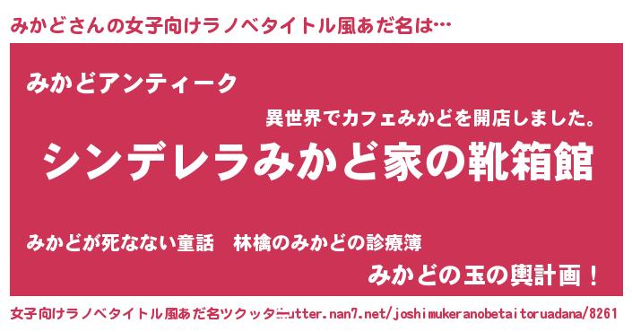 | ヘコむあだ名 | 『みかど(笑)』『みかを』『みかもー』 |