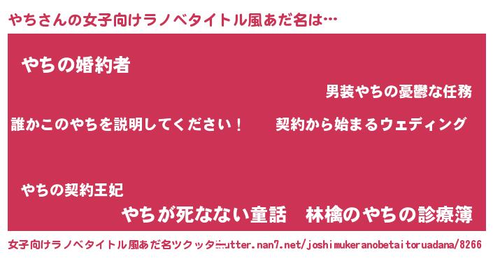 | 胡散臭い通販商品みたいなあだ名 | 『億万長者になれる水晶球…その名も「やち」』 |
