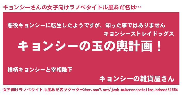 | 男性向けラノベタイトル風あだ名 | 『転生したらキョンシーだった件』 |