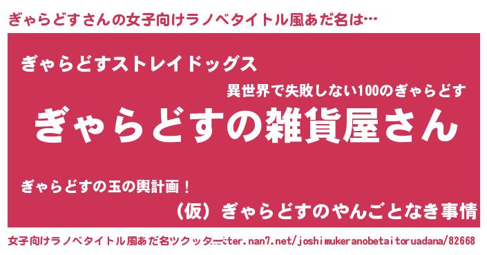 | 男性向けラノベタイトル風あだ名 | 『やはりぎゃらどすの青春ラブコメはまちがっている 』 |