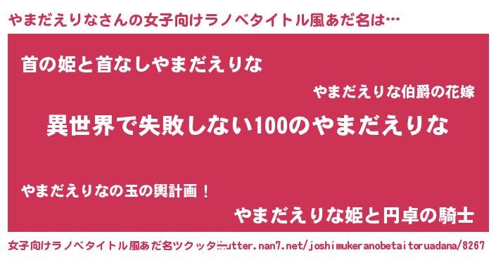 | 男性向けラノベタイトル風あだ名 | 『やまだえりなという概念が存在しない退屈な世界 』 |