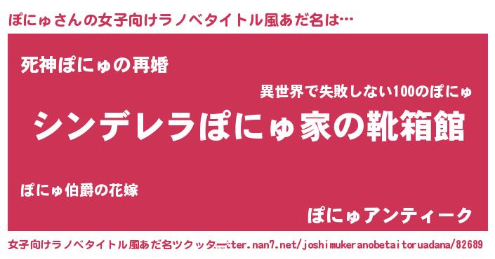 | 男性向けラノベタイトル風あだ名 | 『緋弾のポニュ』『魔法科高校のぽにゅ』 |